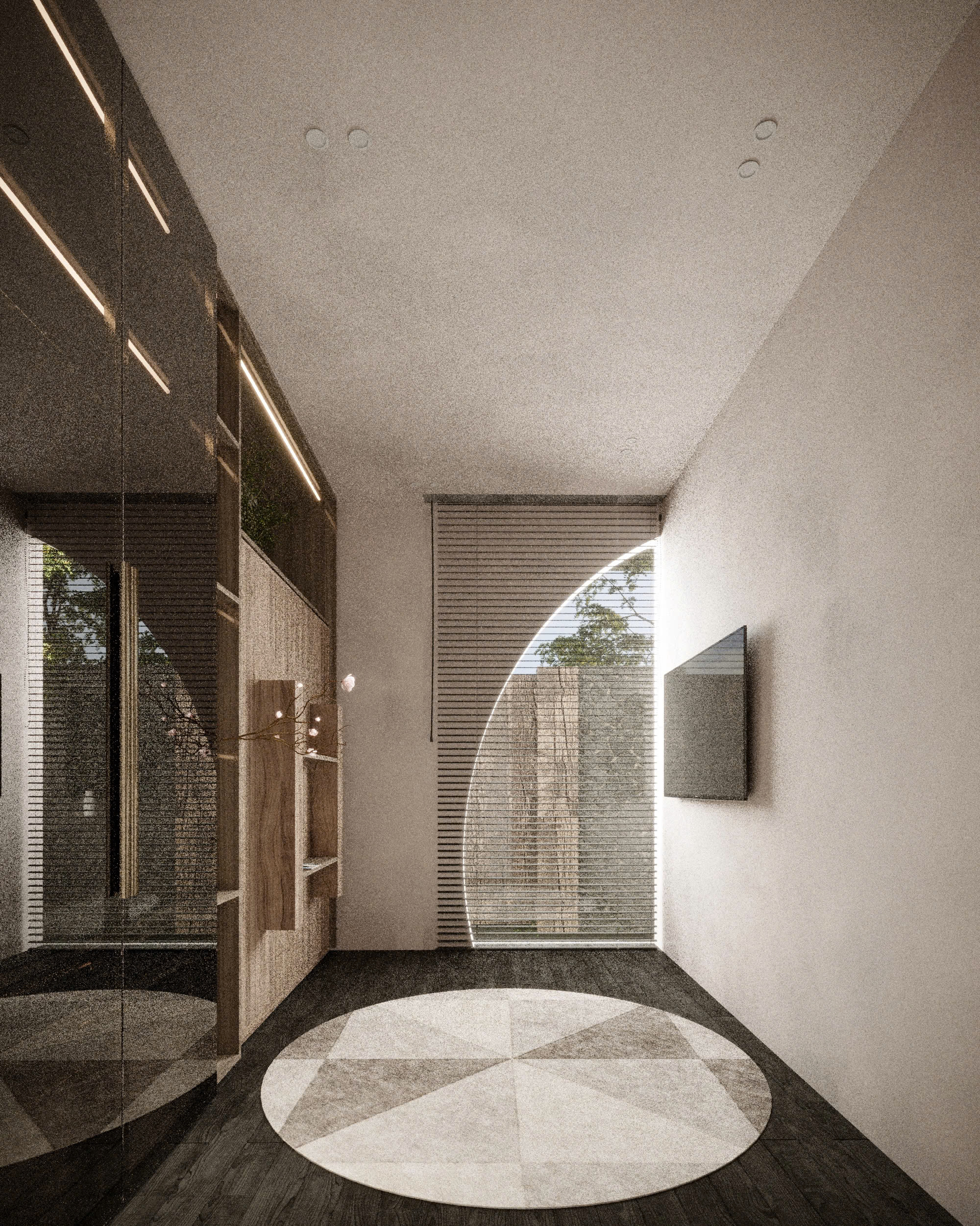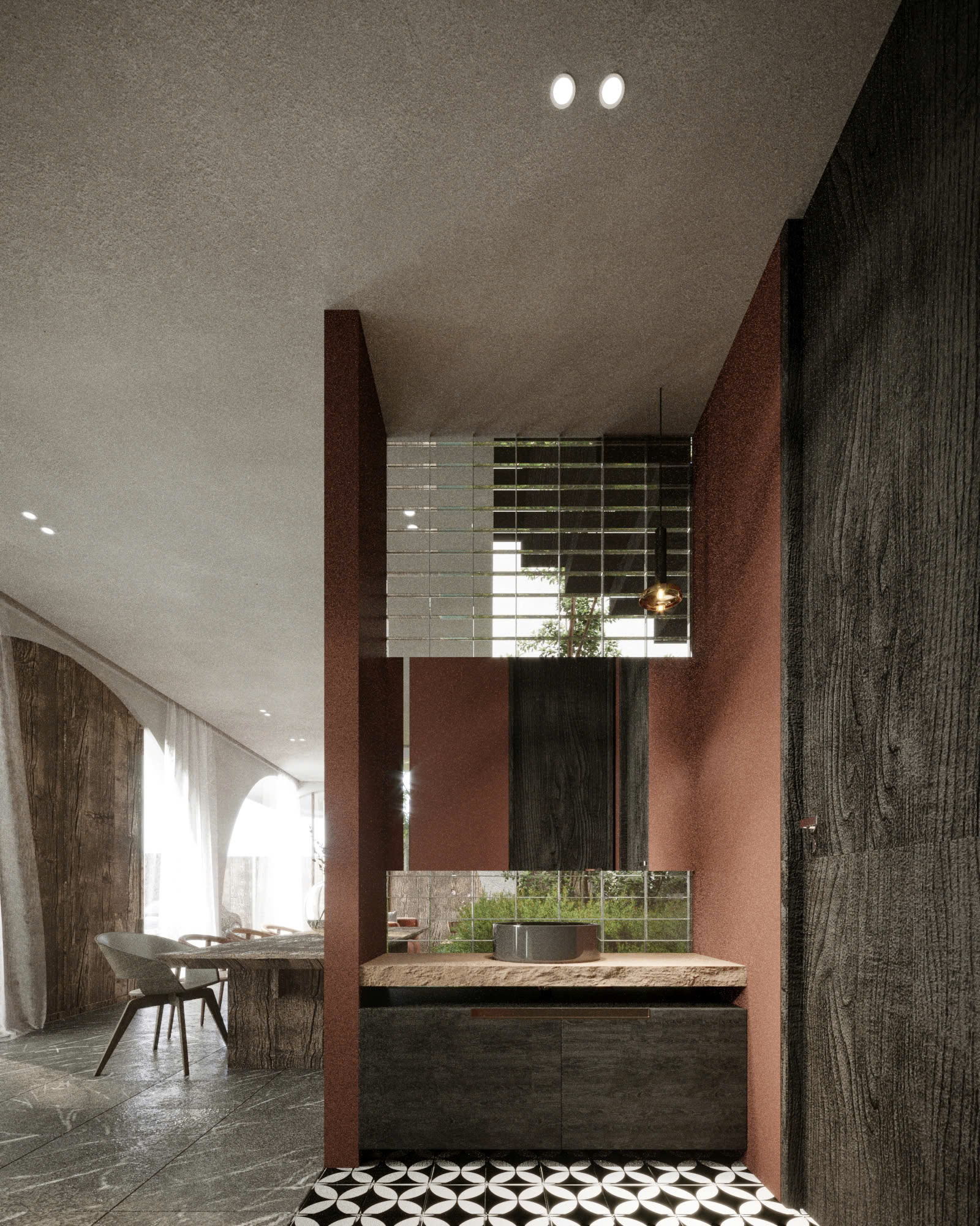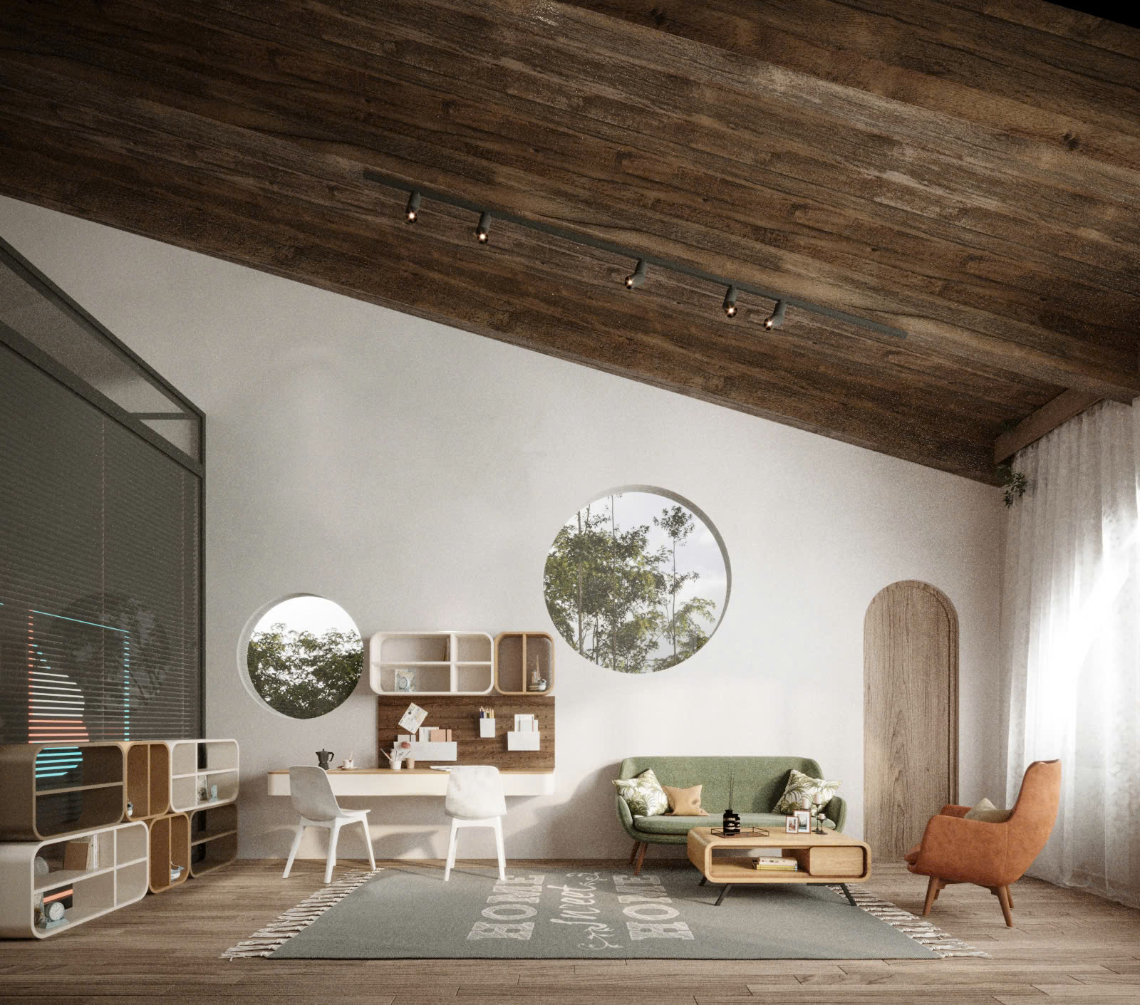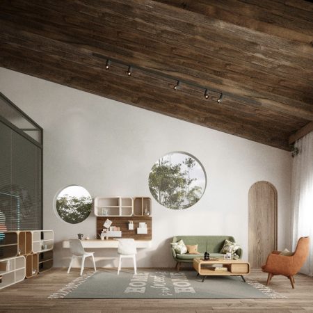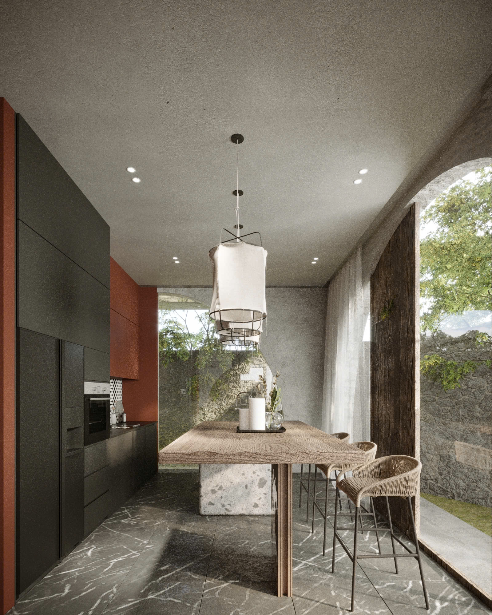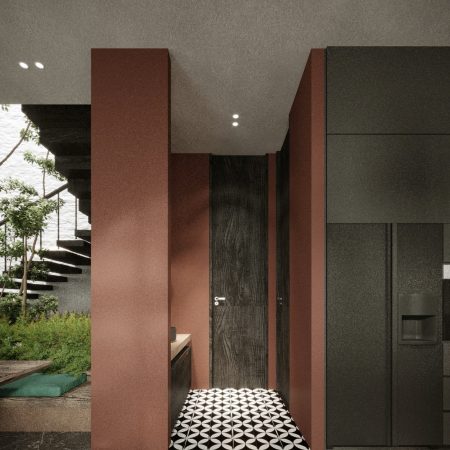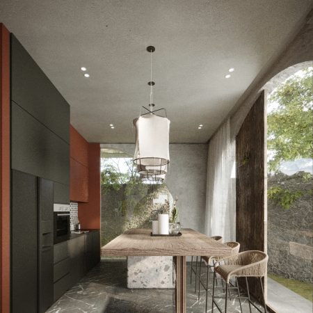 Lấy cảm hứng từ phong cách Địa Trung Hải – với tường vôi trắng, mái ngói đất nung, vòm cong mềm mại – ngôi nhà được thiết kế như một ốc đảo nội tâm: